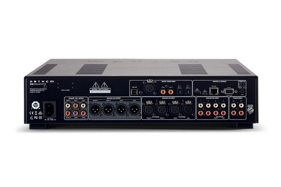 O Anthem STR Preamplifier é um pré-amplificador estéreo de alta performance que combina controle analógico preciso com processamento digital avançado. Equipado com DAC de alta resolução, correção acústica ARC Genesis e gerenciamento de subwoofers, oferece uma experiência sonora personalizada e imersiva.