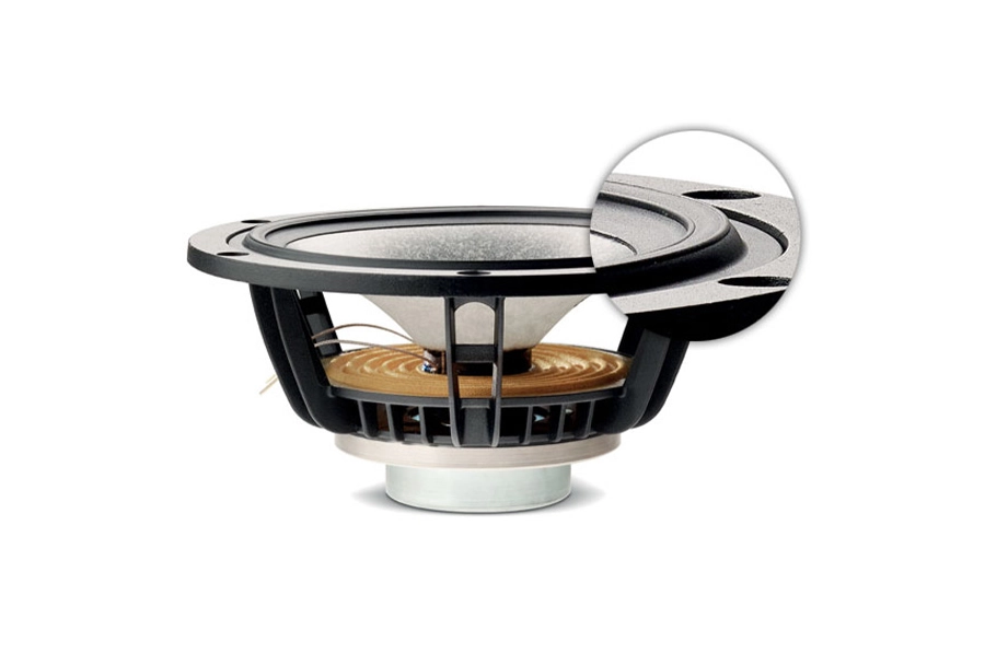 • Médio: 6.5" (16.5cm) Bass midrange W com suspensão TMD e motor NIC